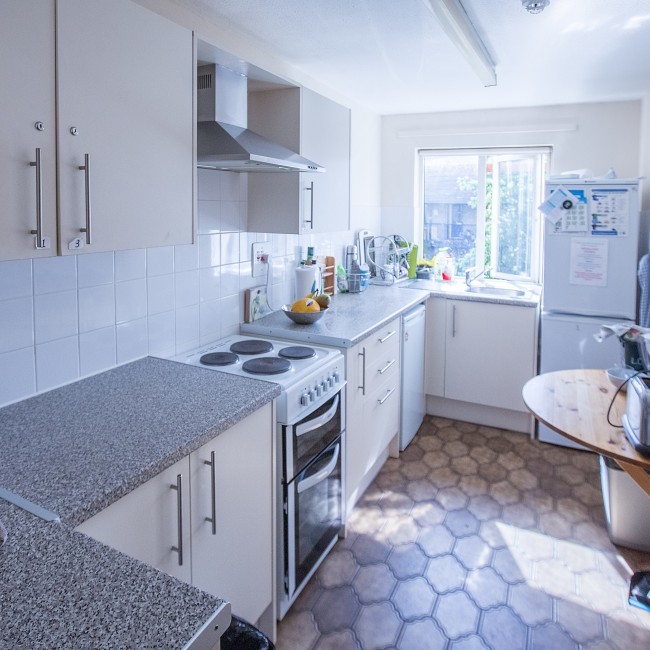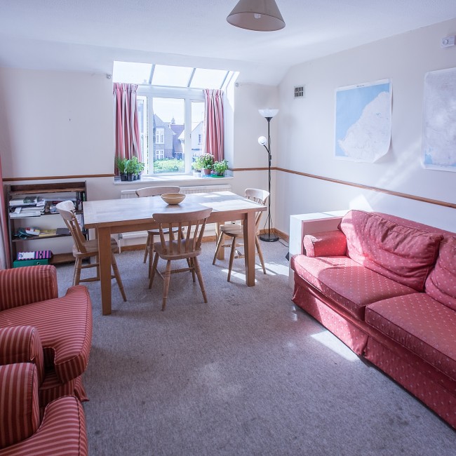 Three-storied accommodation in a very convenient location for the main College site. There are five bedrooms sharing two bath/shower rooms and a shared kitchen and living area.