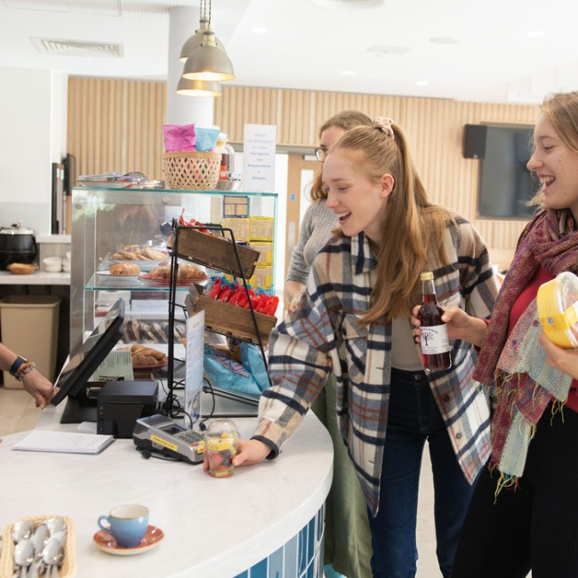 We have a modern, light, and airy dining hall and a great café where breakfast and snacks are available on weekdays.